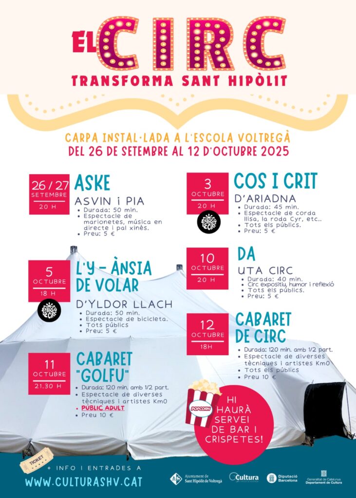 🎪 El CIRC arriba a Sant Hipòlit! Del 26 de setembre al 12 d’octubre 2025, la carpa de circ estarà instal·lada a l’Escola Voltregà i s’omplirà d’espectacles de circ, riures i emocions per a totes les edats. Més informació i entrades a www.culturashv.cat o a taquilla una hora abans de cada funció. Vine i descobreix […]